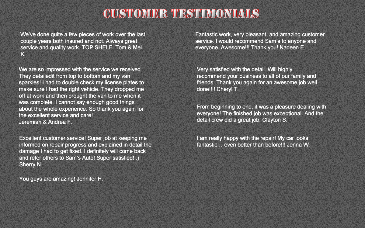 Sam's Auto Body began operations in a single stall garage in 1999, and it grew steadily, as happy customers shared stories of their